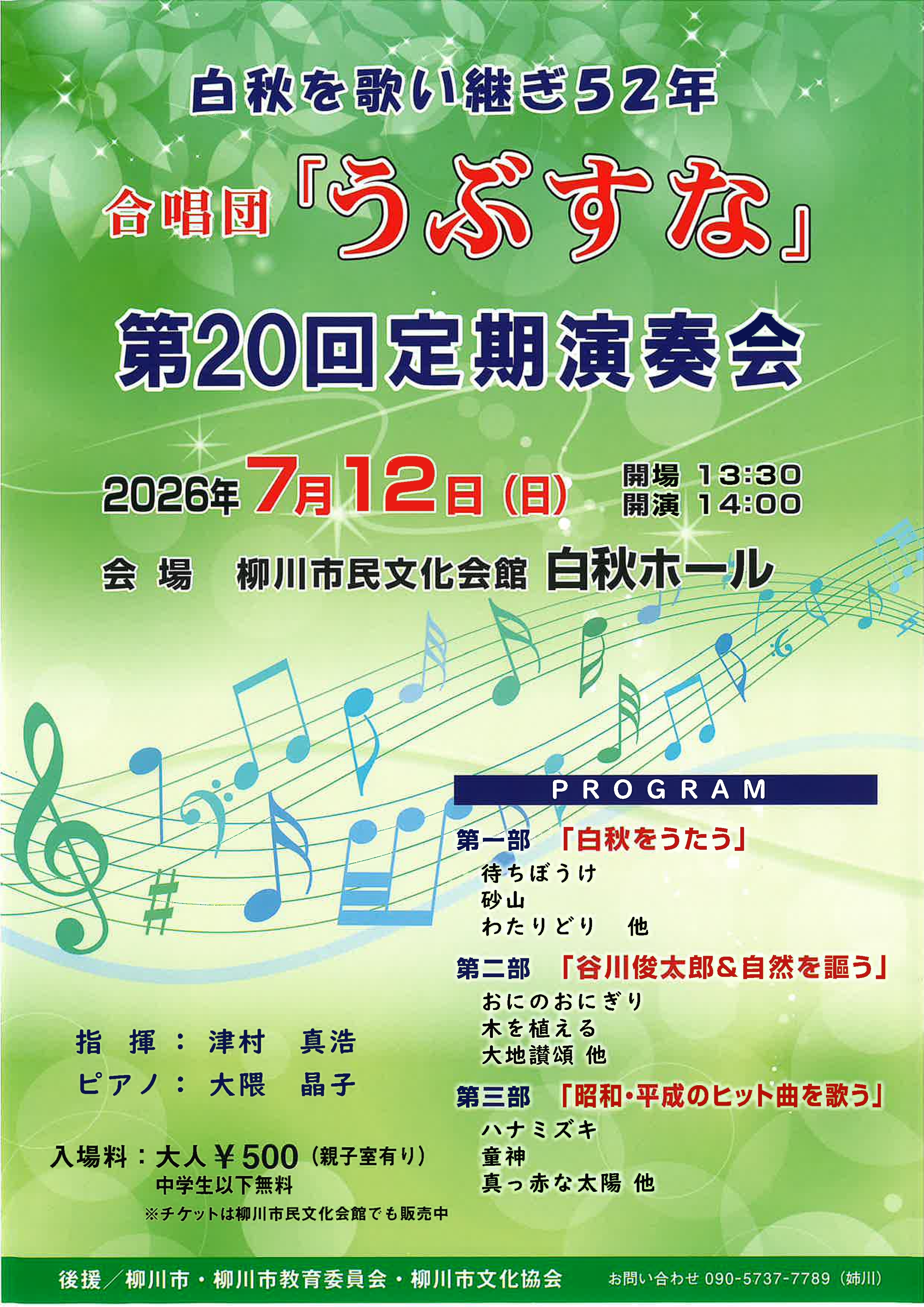 合唱団「うぶすな」第20回定期演奏会 白秋を歌い継ぎ52年ー。 柳川市を拠点に活動する混声合唱団で、地域に根差した音楽活動を展開しています。 第20回定期演奏会を柳川市民文化会館で開催します。